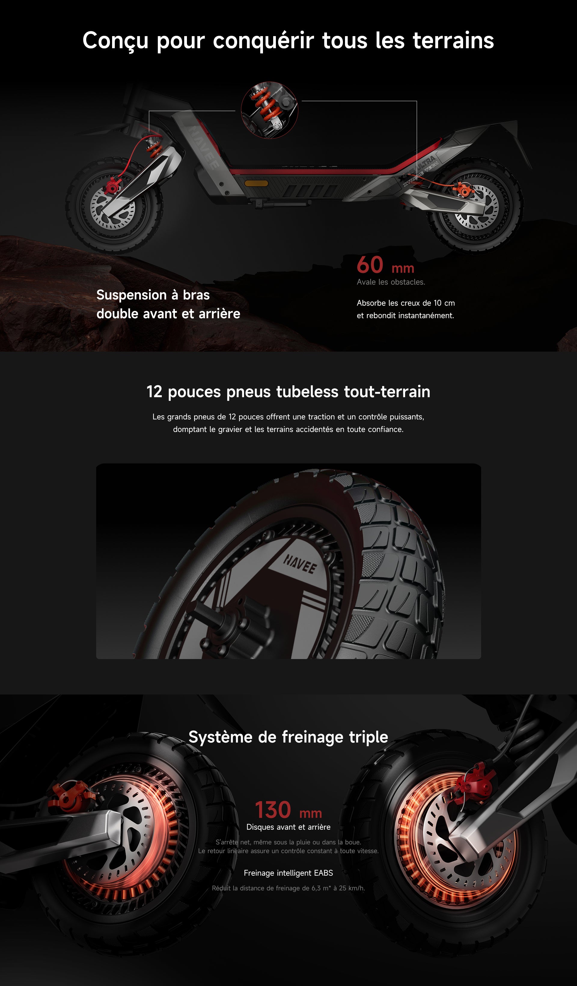 Roulez plus en sécurité avec NavXride. En empêchant le patinage des roues sur routes mouillées, terrains meubles ou virages serrés, il garantit une conduite plus fluide et plus stable, où que vous alliez.