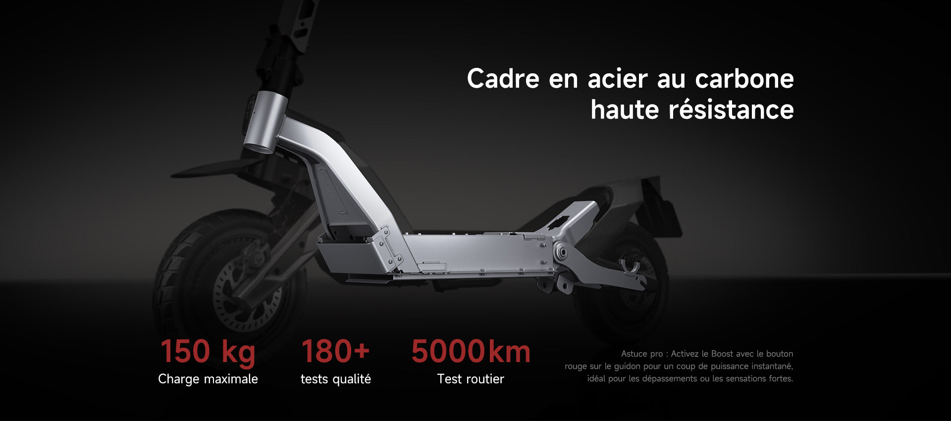 Écran LED couleur de 5 pouces affichant toutes les informations essentielles — vitesse, niveau de batterie et autonomie restante. Gardez tout sous les yeux grâce à un affichage clair et lumineux.